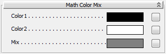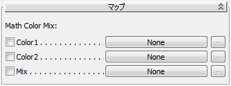 このロールアウトにあるコントロールを使用すると、Math Color Mix シェーダの基本パラメータにシェーダを割り当てることができます。これは、標準マテリアルのコンポーネントとしてマップを使用する場合と似ています。シェーダを追加することで、複雑な効果を生成するシェーダ ツリーを作成できます。