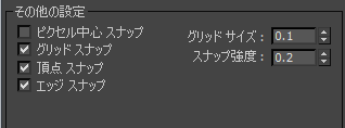 このチェック ボックスにチェックマークが付いている場合、グリッド エッジおよび交差にスナップします。