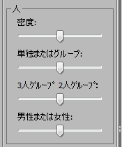 停滞領域の人の相対的な数。 人の数を減らすにはスライダを左にドラッグします。増やすには右にドラッグします。