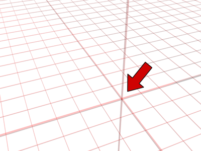 ワールド座標系の数字は、原点から X 軸に沿って右に、Y 軸に沿って上に、Z 軸に沿って(視点から)外へいくにしたがって増加します。数字は原点から X 軸に沿って左に、Y 軸に沿って下に、Z 軸に沿って(視点から)内にいくにしたがって(-1、-2、-3 のように)減少します。整数の間の間隔は測定単位(3ds Max 単位)と呼ばれます。