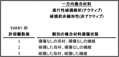 一方向複合材料では、状態変数 SVAR2、SVAR3、...、SVAR35 の静的進行性破損解析に対する解釈は、次のとおりです。