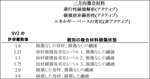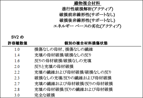 - エネルギー ベースの劣化をアクティブにした場合、SV7 は繊維破損時の複合材料の有効なひずみ測定として定義されます。