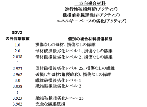 一方向複合材料では、状態変数 SV3、SV4、...、SV36 の進行性疲労解析に対する解釈は、次のとおりです。