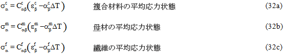 )における複合材料全体のひずみ状態が、構造有限コードによって直接提供されています。一方、方程式 32b と 32c では、1 点(