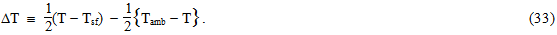 方程式 33 の右辺第 2 項により、硬化後冷却後に課される追加の温度低下が適切な熱応力を生成するようになります。マコーレーのカッコ { } を使用することで、方程式 33 の右辺第 2 項は、現在の温度 T が環境温度 Tamb 未満になった場合にのみ、ΔT に寄与することに留意してください。この場合(T