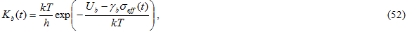 上に示す荷重履歴を、R = 0.1 および R = 0.6 に対して検討します。応力が時間によってのみ変化する量であれば、時間の関数としての接着破壊率は次のように記述されます。