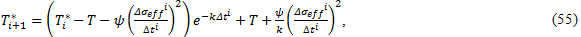 ここで、ψ は比例定数、k はニュートンの冷却の法則、Δσeff は、時間 Δt における有効な応力変化の大きさ、n は周期当たりの異なる応力範囲の数です [26]。以下の図は、Δσeff および Δt の値が、単一の荷重サイクル中にどのように決定されるかを示します。