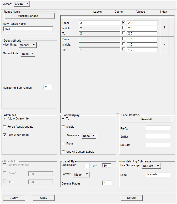 SV2 は 1~4 の値を取ることができる個別の実変数であるため、SV2 の個別の整数値に固有の色コンターを関連付けるように、コンター プロットの設定を変更することが重要です。SV2 が 1.0、2.0、3.0 の値を取ることができる場合、カラー スペクトルが 3 色のみを含むように設定し、各色に関連付ける値の範囲を変更します。