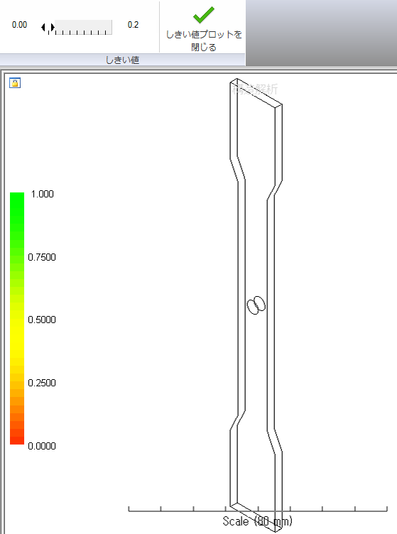 - メッシュ細分化が必要となる可能性がある領域を特定するには、しきい値尺度上の矢印をドラッグします。