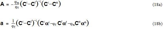 この時点で、以前に課した線形構成関係の制限の利点をよく理解することができます。具体的には、Cc、Cf、Cm、αc、αf、αm の成分が定数でなければ、方程式 17 を生成する代数が処理が困難になります。