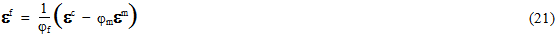 母材の平均ひずみ状態 εm が方程式 20 によって計算されたら、繊維の平均ひずみ状態 εf は単に方程式 8 を使用して次にように計算できます。