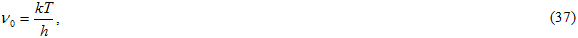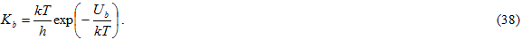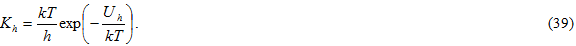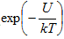 ここで、h はプランクの定数 (h = 6.626068 × 10-34 J-s/K-atom)、kT は熱エネルギーで Boltzmann 定数 k (k = 1.3806504 × 10-23 J/K-atom)と絶対温度 T の積として表します。しかし、各振動に関連付けられた熱エネルギーは単一の数ではなく、むしろ分布であるため、任意の振動がエネルギーの障壁 U を乗り越え、平衡状態から別の状態に移動するのに十分なエネルギーがある可能性が常にあります。これが任意の振動で発生する可能性は、一般的な指数フォーム