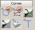 ツールの中には、サブパレットに配置されているものもあります。右上隅に黄色の矢印が付いているツールにはサブパレットがあります。