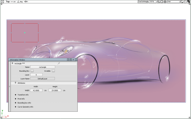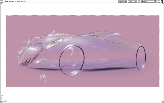 Alias イメージ プレーンは、3D 環境にあり、そのサイズは Alias 単位で定義されています。デザインの初期段階では印刷サイズを考慮せずにスケッチを開始し、その後そのスケッチが適切なサイズで印刷されないことに気づくこともあります。