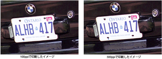 指定した任意のイメージ プレーン サイズおよび解像度を使用して、ppi (1 インチ当たりのピクセル数)を下げて必要なイメージ サイズを実現することも、ppi を維持しサイズを縮小して印刷することもできます。