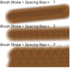 - イメージ レイヤで数回ストロークを作成して、ブラシ エフェクトをテストします。ストローク間の距離を変更する必要がある場合は、テクスチャ スタイルと個人設定に基づいて、Stroke > Spacing Bias と Spacing Profile を調整します。