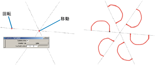(Num Radial Sections の値と同数の)多数のシンメトリ軸が中心点から放射状に点線で表示されます。