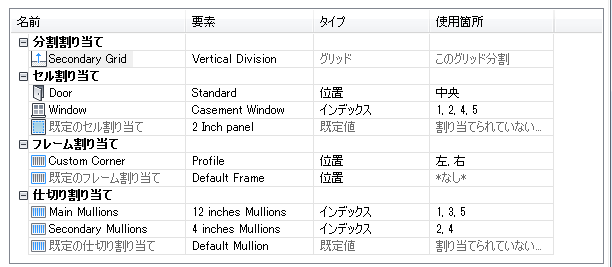 カーテン ウォール スタイルの要素定義を作成した後は、それらの定義を、分割、セルの面材、フレーム、マリオンなど、カーテン ウォールのそれぞれの要素タイプに割り当てることができます。
