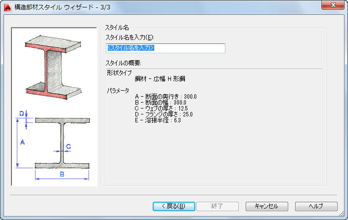 構造部材スタイル ウィザードを使用して構造部材スタイルを作成するには、次の手順を実行します。スタイル内の構造部材形状は、構造部材カタログに用意されている 19 種類の形状タイプのいずれかに基づいて作成できます。作成するスタイルの単位は、現在の図面の単位によって決まります。