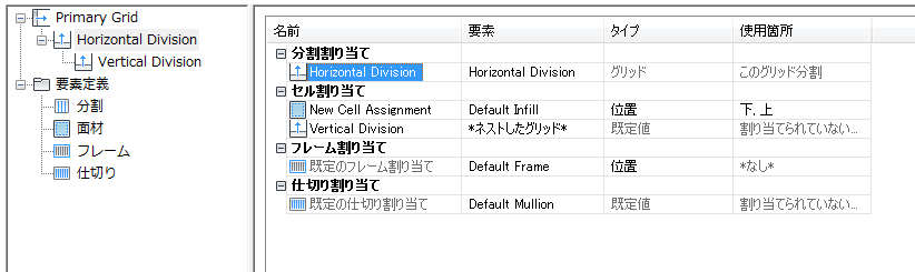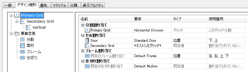 それぞれのグリッドは、独自のセル割り当てがあります。セルへの割り当てには、他のグリッド、パネル面材、またはドアや窓などのオブジェクトが含まれます。
