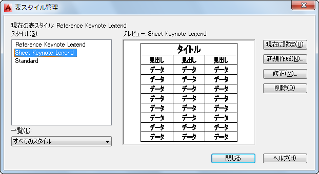 キーノート凡例は、AutoCAD テーブル スタイルを使用しています。使用できるテーブル スタイルを変更するには、この手順を使用します。