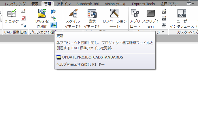 選択されているタブまたはパネル名の横にはチェックマークが表示されます。