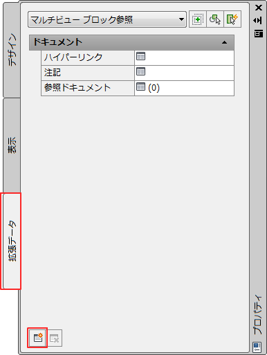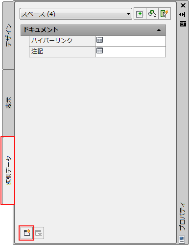 - [プロパティ]パレットの[拡張データ]タブで、[プロパティ セットを追加]をクリックします。