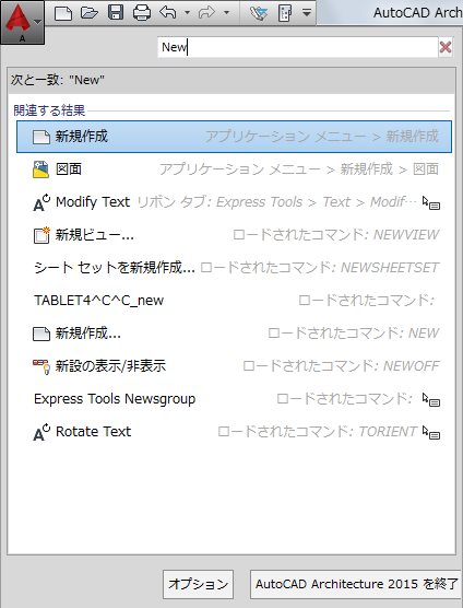 アプリケーション メニューでは、コマンドを検索して、一致リストからコマンドを選択することができます。検索結果は次の場所から取得されます。