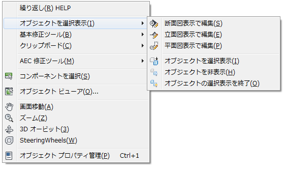 図面の汎用的なコンテキスト メニュー