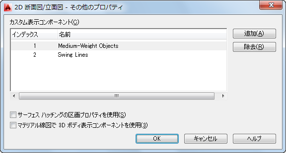 - 追加するコンポーネントに対して表示プロパティを指定するには、[レイヤ/色/線種]タブをクリックし、コンポーネントを選択して、柱の値を必要に応じて変更します。