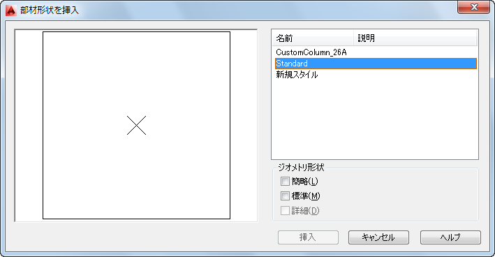 2. [部材形状を挿入]ワークシートの右ペインで、カスタムの部材形状を選択します。