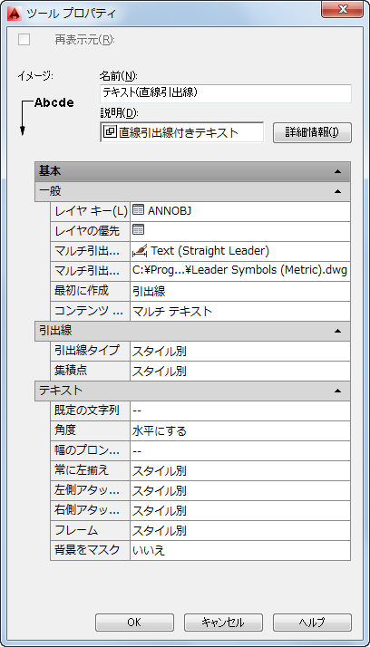 - 引出線のツール プロパティは慎重に検討してください。単純な引出線をより少ない時間でより標準化された形で作成できる、いくつかの事前設定があります。