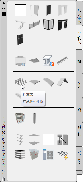 ツール イメージのサイズを小さくするほど、ツール パレット上に表示できるツールの数が増えます。これは、プロパティ パレットやプロジェクト ナビゲータ パレットなど、別のパレットを表示する際に重要となります。