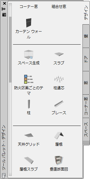 天井グリッド ツールを含むツール パレット