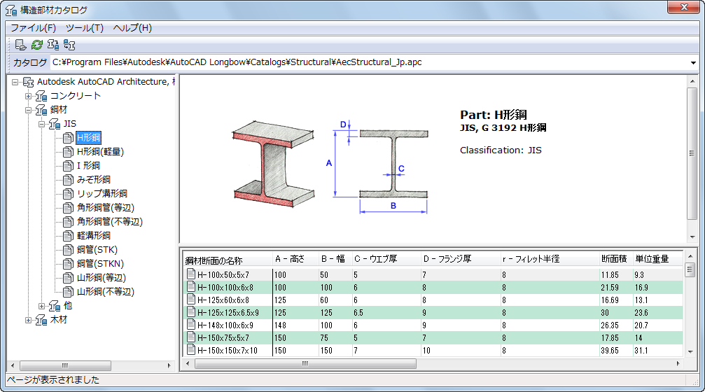 AutoCAD Architecture に含まれる構造部材カタログを使用すれば、梁、ブレース、柱のほとんどの標準的なスタイルを作成することができます。このカタログにはコンクリート製、金属製、木製の業界標準の構造部材形状に対する仕様が収められており、それらの情報は、Windows® エクスプローラに似たツリー ビュー形式で表示されます。このカタログを検索して特定の形状を選択し、スタイルを作成することができます。