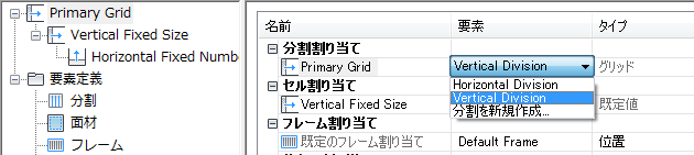 分割により、グリッドの方向(グリッド セルとマリオンの方向: 水平または垂直)と、分割タイプ(セルの数とサイズ)が定義されます。