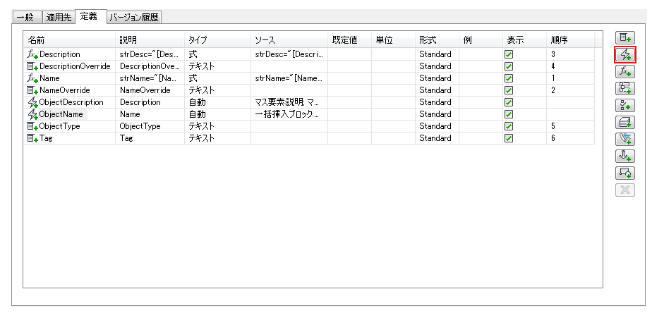 [定義]タブで、[自動プロパティ定義を追加]をクリックします。