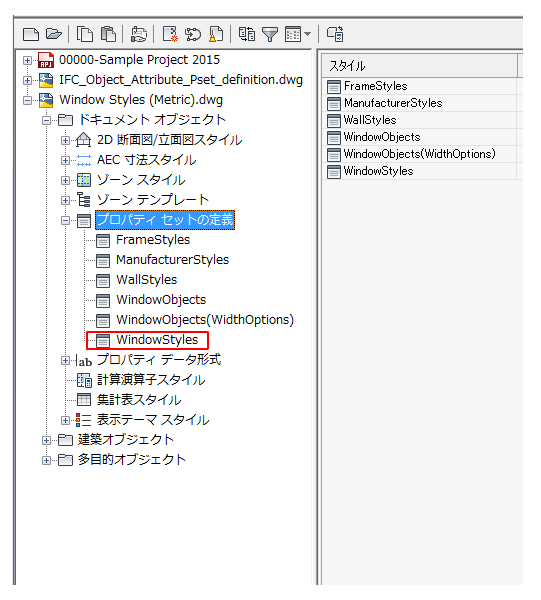 [プロパティ セットの定義]を展開し、[窓スタイル]を選択します。