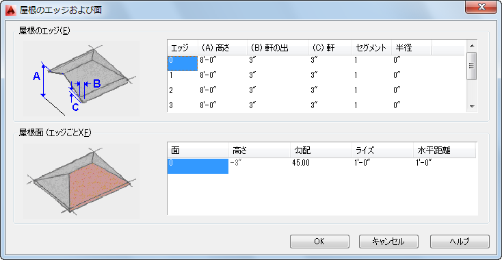 屋根のエッジと面を編集するには、次の手順を実行します。 以下を編集できます。
