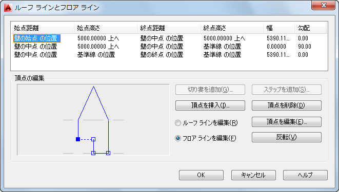 2. [ルーフ ラインを編集]または[フロア ラインを編集]を選択します。