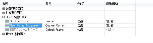 - 右ペインでフレーム割り当てを選択して右クリックし、[名前変更]をクリックして、どのようなフレームか分かるような名前を入力します。