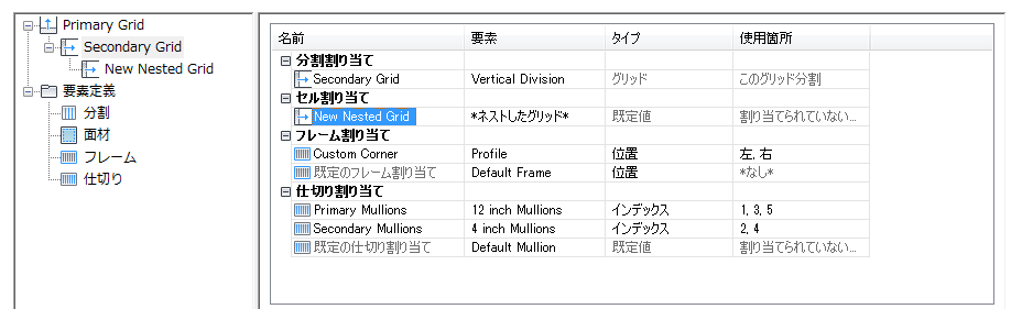 ネストしたグリッド、つまりグリッド内のグリッドを作成するには、次の手順を実行します。それぞれのネストしたグリッドには、独自の分割規則、セル割り当て、フレーム、マリオンがあります。既定では、ネストしたグリッドに対してフレームは選択解除になっています。