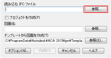 2. [IFC ファイルを読み込んで図面を作成]ダイアログ ボックスの[読み込む IFC ファイル]領域で、[参照]をクリックします。
