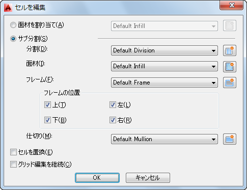 | セルの区画後に作成したグリッドのマリオン定義を選択するには | マリオン定義を選択します。 |