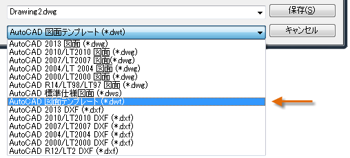 どの図面(.dwg)ファイルも、図面テンプレート(.dwt)ファイルとして保存することができます。既存の図面テンプレート ファイルを開き、修正し、再度保存(必要に応じて別のファイル名で)することもできます。