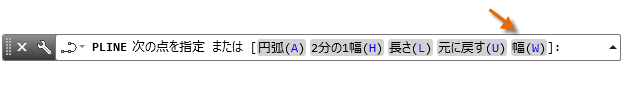 ポリラインは、一定の幅であったり、始点と終点の幅が異なる場合があります。ポリラインの始点を指定した後、[幅(W)]オプションを使用して、後続のセグメントの幅を指定することができます。幅の値はいつでも(新しいセグメントの作成中でも)変更できます。
