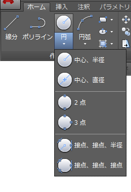 CIRCLE[円]コマンドの既定のオプションでは、中心点と半径を指定する必要があります。