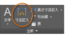 DIMLINEAR[長さ寸法記入]コマンドを使用して、水平方向および垂直方向の寸法を記入することができます。ボタンが、最も一般的な寸法記入コマンドを含むドロップダウン リストであることに注目してください。