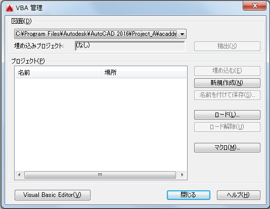 [VBA プロジェクトを開く]ダイアログ ボックスが表示されます(詳細は、VBALOAD[VBA ロード]コマンドを参照してください)。このダイアログ ボックスで、現在の作業セッションに既存のプロジェクトをロードできます。