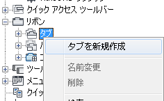 [タブを新規作成]という名前の新しいリボン タブが[タブ]ノードの一番下に表示されます。